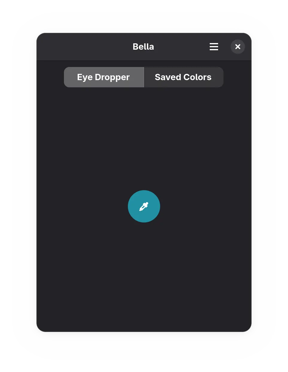 Bella | Alternativa ao Just Color Picker. Seletor de cor da tela para mostrá-la em hexadecimal. Pode salvar uma lista de cores. https://github.com/josephmawa/Bella | |